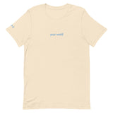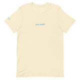 It's 'Your World' embroidered T with SIAS on the sleeve.