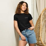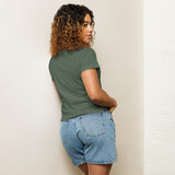 Made of 100% combed and ring-spun cotton, this t-shirt is ultra soft and smooth against the skin. With its flattering, longline fit and crew neck, this tee will look best paired with high-waisted bottoms.
